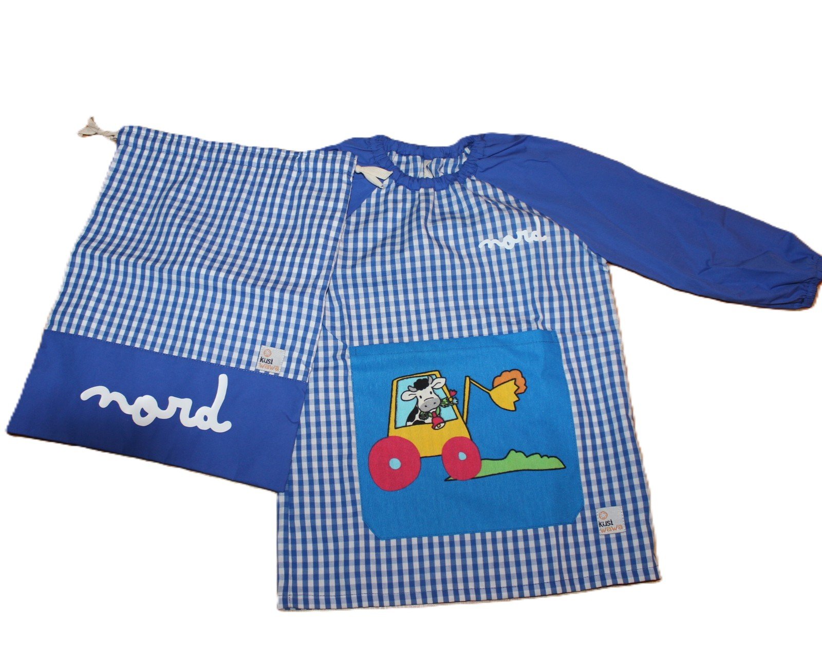 Batas prácticas, divertidas y pensadas para la vida real. Nuestras batas de algodón 100% son suaves, transpirables y muy fáciles de poner y quitar gracias al elástico en cuello y puños. Perfectas para comidas, pintura y guardería, protegen la ropa y aportan comodidad en cualquier actividad. Incluyen una bolsa de merienda a juego, impermeabilizada por dentro, y además las personalizamos con el nombre para hacer cada conjunto único